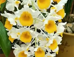 美花石斛是兰科石斛属多年生草本。茎柔弱,斜立或下垂,呈细圆柱形,有时分枝;叶互生于茎上,…