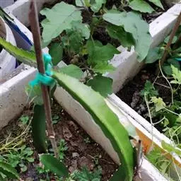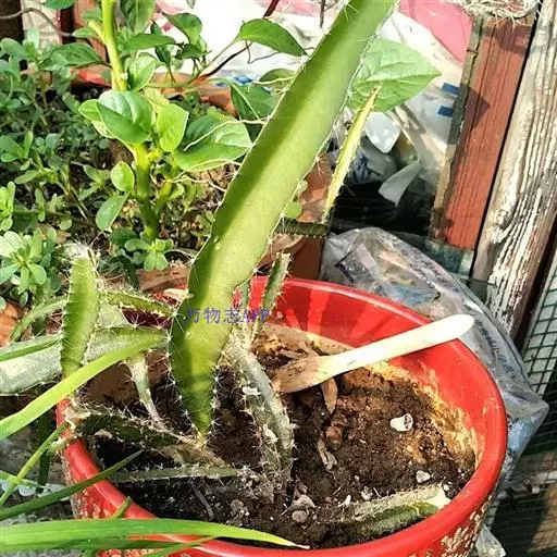 火龙果的气生根很多,可以转化为吸收根。进行扩穴改土,可逐渐扩宽根系分布;也可绑扎牵引诱导气生根下地。