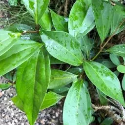 阴香(学名:Cinnamomum burmanni (Nees et T.Nees)Blume),别名:阴草、胶桂、土肉桂、假桂枝、山桂、月桂等,叶有离基三出脉,但脉腋无腺点,以此与香樟区别。树皮灰褐至黑褐色,有近似肉桂的气味。幼嫩枝梢的气味近似檀香。产亚洲东南部,中国南部有分布。