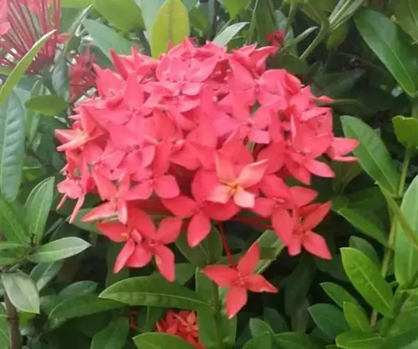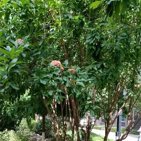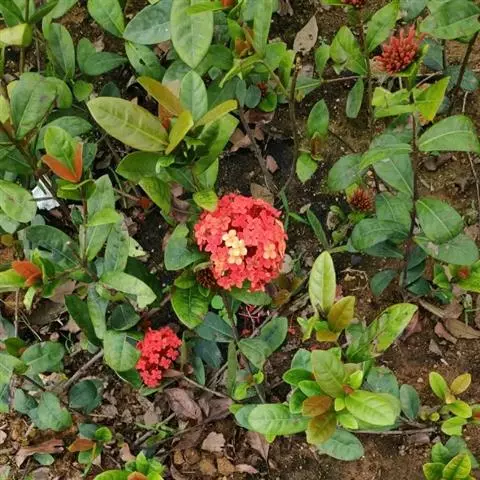株型较高大,枝条相对疏松的龙船花品种,如大王龙船花、白龙船花等,它们一般花朵硕大,美艳无比,单植、丛植或群植都自成一景,3或5丛成群,既相对独立,又浑然一体。或与其它花木配植,增加空间变化和层次感。
