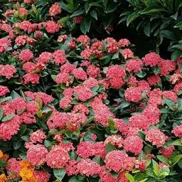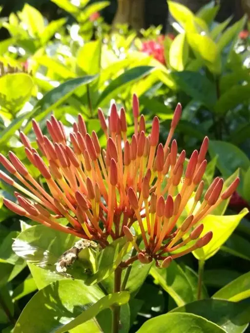龙船花繁花时节,红似火、橙如霞,花浮于叶面上,且花期长,花色丰富,有红、黄、橙、白等,因而在园林中常大面积片植成带状,在道路旁或车道中间的隔离带,地植成大色块,非常有气势、非常状观,随着季节和花色的不同,呈现给人们的是彩色花带。适宜作花带的品种有矮龙船花系列。在空旷和平坦的地段,片植成跳跃式大色块,是园林绿化中常用的手法。 龙船花 观赏种植