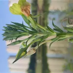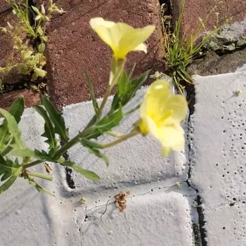 黄花月见草(Oenothera glazioviana Mich.) 柳叶菜科、月见草属直立二年生至多年生草本,具粗大主根;茎高70-150厘米,粗6-20毫米,不分枝或分枝,常密被曲柔毛与疏生伸展长毛(毛基红色疱状),在茎枝上部常密混生短腺毛。基生叶莲座状,倒披针形,先端锐尖或稍钝,基部渐狭并下延为翅,边缘自下向上有远离的浅波状齿,白色或红色,上部深绿色至亮绿色,两面被曲柔毛与长毛;茎生叶螺旋状互生,狭椭圆形至披针形,自下向上变小,。种子棱形,褐色,具棱角,各面具不整齐洼点,有约一半败育。花期5-10月,果期8-12月。