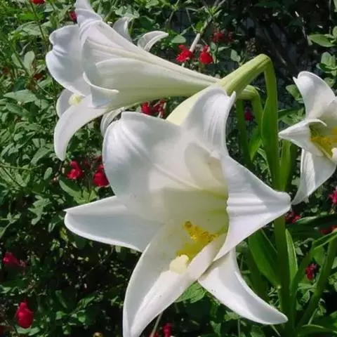 麝香百合是百合科百合属的多年生球根草本植物。鳞茎呈近球形,鳞片白色;茎高45-90厘米,绿色,…