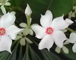 粗壮木质藤本。全株具乳汁;茎皮灰褐色;幼枝、嫩叶、叶柄、花序被短微毛,渐变无毛。叶对生,近革质;叶柄长4-6mm;叶片椭圆形或长椭圆形,稀椭圆状披针形,长4.5-12m,宽1-5.3cm;先端渐尖,基部楔形至圆形,侧脉每边15条,向上斜升到叶缘网结。顶生聚伞花序,有花6-12朵,长3-5cm;花萼5深裂,裂片长圆形,先端急尖;花冠白色,高脚碟状,花冠裂片5,长卵圆形或倒披针形,比花冠筒长,向左覆盖,偏斜不正;副花冠鳞片状,鳞片先端2-3裂;雄蕊5,着生于花冠筒下部。浆果椭圆形,橙红色,先端短尖,基部圆形或钝,长3.5-5.3cm,直径2.2-4cm。种子压扁,近圆形或长圆形,边缘不规则波状。花期4-9月,果期6月至翌年3月。