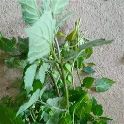 一年生直立草本,多分枝。叶互生,具叶柄, 茎直立,有棱条,无毛,高0.4-1.5米,上部交互不等的二歧分枝。