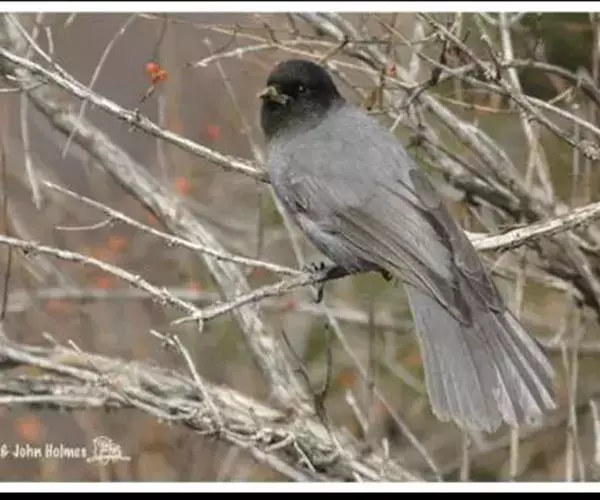 黑头噪鸦(学名:Perisoreus internigrans)是鸦科噪鸦属的鸟类,体形似乌鸦但较小。体羽呈黑及灰褐色,通体无鲜亮色调。尾甚短。与北噪鸦的区别在体羽全灰,嘴钝短,两翼、腰及尾少棕色。虹膜褐色;嘴黄橄榄色至角质色;脚黑色。