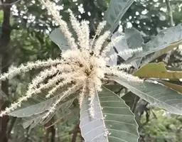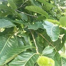 落叶乔木,树高20~25米。树干皮灰褐色或暗灰色,有浅纵裂。果实长圆形,先端突尖,绿色,密生腺毛。坚果有8条明显的棱脊,之间有刻点,壳坚厚,内隔壁骨质,种仁难取。
