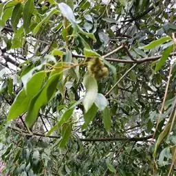 栲是壳斗科,锥属乔木,高可达30米,胸径达80厘米,枝、叶均无毛。叶片长椭圆形或披针形,稀卵形,…
