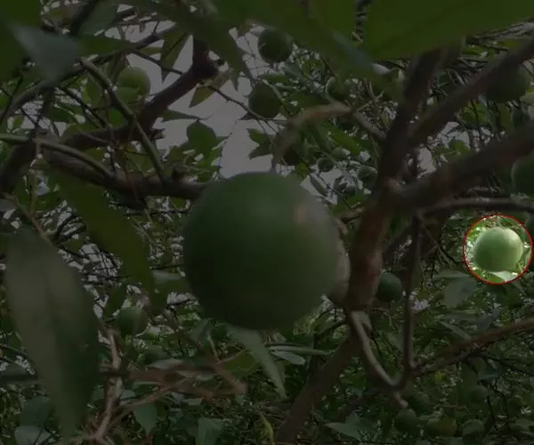 树干皮灰褐色,老时变暗褐色,有纵裂。新枝浅绿色或绿褐色,光滑,具白色皮孔。果实圆形黄绿色,表面被柔毛,果实内有种子1枚,外种皮骨质称为果壳,表面具刻点状,果壳有厚薄之分。内种皮极薄,呈浅棕色,有脉络。