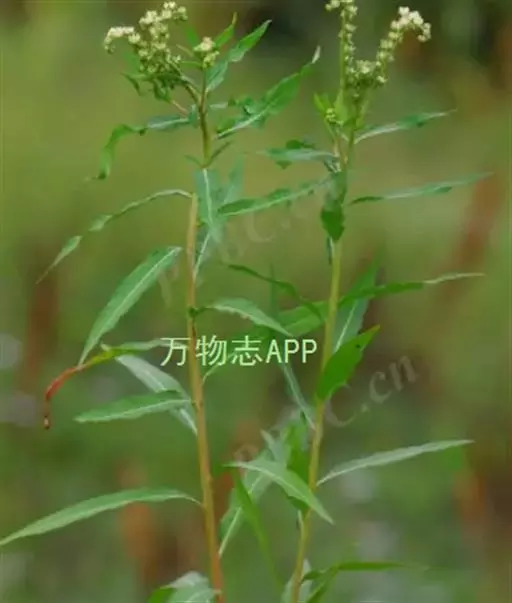 多年生草本,高40-65(-90)厘米。根状茎分枝;茎不分枝,稀基部分枝,具多数叶,中下部无毛,上部疏生黑褐色腺毛。叶互生,无柄或近无柄,披针形至狭披针形,长4-10厘米,宽0.4-1.2厘米,先端渐尖,边缘具细重锯齿,无毛。