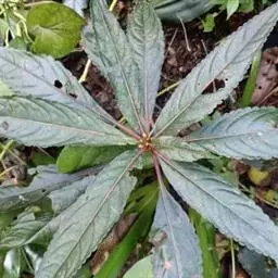新几内亚凤仙花 形态特征:多年生常绿草本。株高25-30cm,茎肉质,光滑,青绿色或红褐色,茎节突出,易折断。多叶轮生,叶披针形,叶缘具锐锯齿,叶色黄绿至深绿色,叶脉及茎的颜色常与花的颜色有相关性。花单生叶腋(偶有两朵花并生于叶腋的现象),基部花瓣衍生成矩,花色极为丰富,有洋红色、雪青色、白色、紫色、橙色等。花期6--8月。