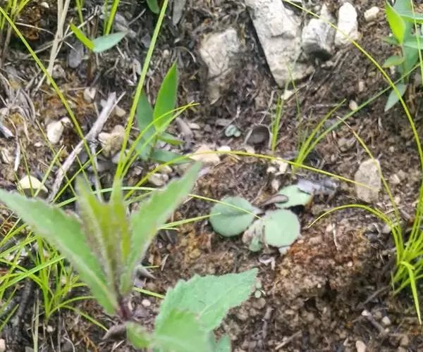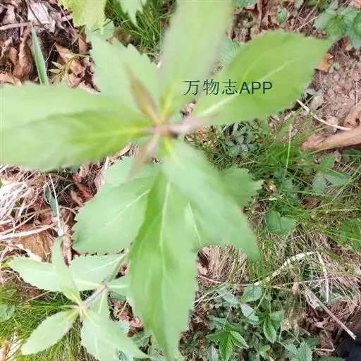 自然野生植物照片,根、茎叶 多年生草本,有白色乳汁。根胡萝卜状, 茎高40-80厘米,不分枝,常被短硬毛或长柔毛,少无毛的。基生叶心形,大而具长柄;茎生叶无柄,或仅下部的叶有极短而带翅的柄,叶片椭圆形,狭卵形,基部楔形,少近于圆钝的,顶端急尖或短渐尖,边缘有不整齐的锯齿,两面疏生短毛或长硬毛,或近于无毛,长3-11厘米,宽1.5-5厘米。