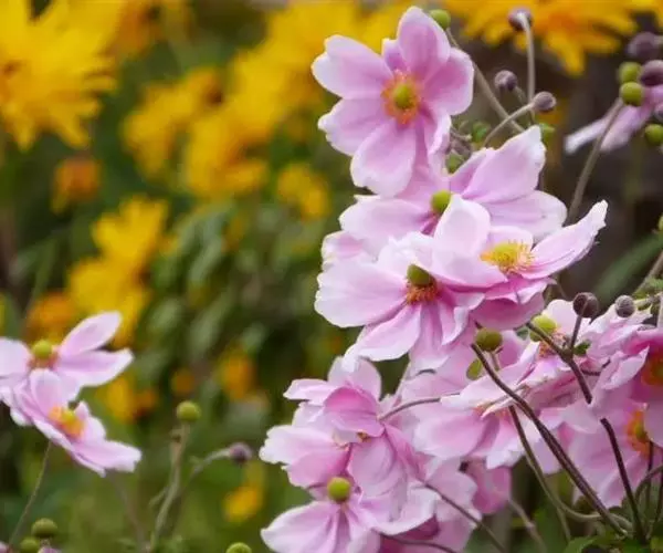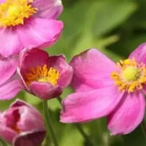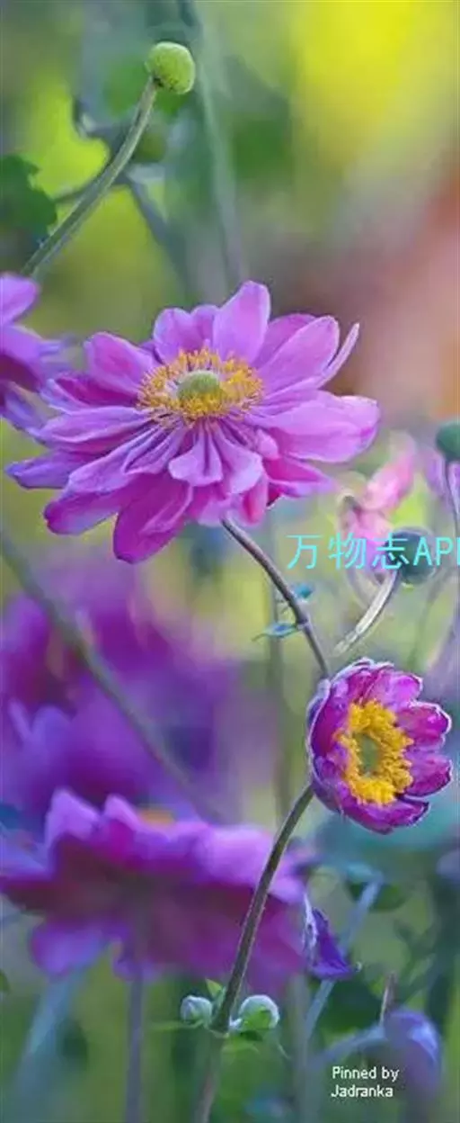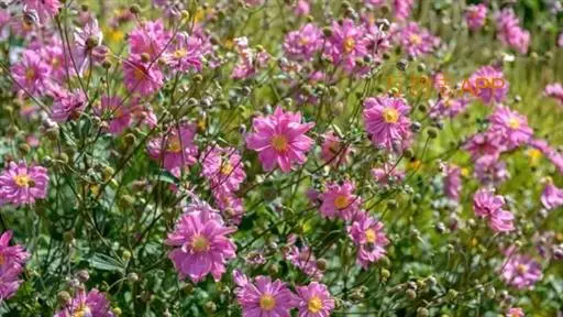 秋牡丹(学名:Anemone hupehensis Lem. var.japonica (Thunb.) Bowles et Stearn)别名是野棉花。是毛茛科,银莲花属多年生草本植物,株高可达120厘米。根状茎斜或垂直,基生叶有长柄,小叶片卵形或宽卵形,边缘有锯齿,两面有疏糙毛;花葶直立,聚伞花序,有较多花,苞片有柄为三出复叶,似基生叶;花梗有密或疏柔毛;萼片紫红色或粉红色,倒卵形,花药黄色,椭圆形,花丝丝形;聚合果球形,7月至10月开花。
