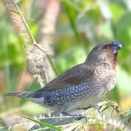 栗腹文鸟:小型鸟类,体长10-12厘米。嘴蓝灰色,基部粗厚,先端尖、呈圆锥状, 脚亦为蓝灰色,整个…