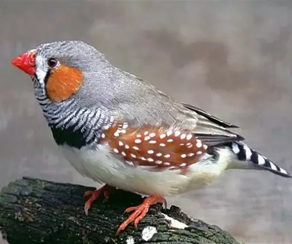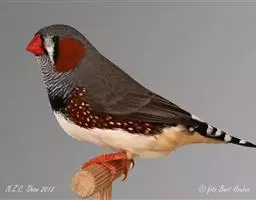 斑胸草雀(学名:Taeniopygia guttata),又名金山珍珠,是雀形目梅花雀科的小型鸟类。该鸟全长10厘米左右,胸和尾羽有黑白斑纹,雄鸟胁部棕红色有白色点斑,除原色种外羽色全白的亦较常见;主要以禾本科植物的种子为食,鸣声低,原产于印度尼西亚和澳大利亚,是世界上许多国家普遍饲养的观赏鸟 ,在20世纪50年代引进中国;常用于脊椎动物脑、行为和演化研究的模型。