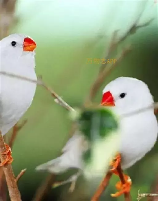 白色变种全身羽毛白色,在发情期雄鸟的嘴为深红色,而雌鸟的嘴通常是橙红色,呈现较浅淡的色调。