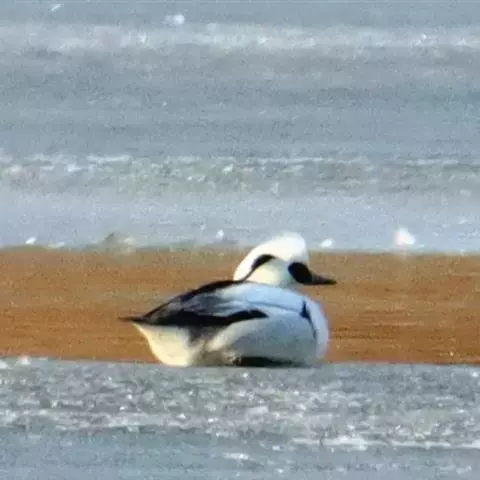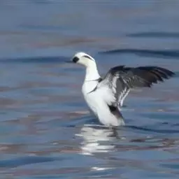 斑头秋沙鸭,是鸭科、斑头秋沙鸭属鸟类。雄鸟眼先和眼周黑色,成块斑状;头部其余部分全为白色。…
