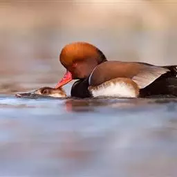 赤嘴潜鸭俗称大红头,是大型鸭类,个体比绿头鸭小,体长45-55厘米,体重1千克左右。雄鸟头浓栗色,…