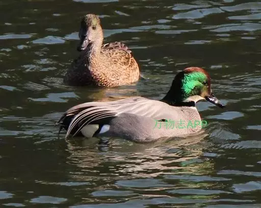 绿眉鸭(学名:Anas americana)属河鸭,又称葡萄胸鸭。中等体型,身长约52厘米。非常似赤颈鸭但体型略大。繁殖期雄鸟宽阔的绿色眼线横贯苍白色的头部而极易分辨。在北美洲的北部和西北部繁殖。冬季迁移到美国东岸、西岸和南岸,中美洲。喜欢沼泽地区。吃水草、昆虫、小鱼、贝壳。