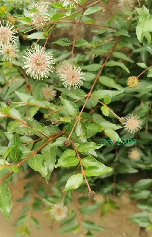 水团花又名:水杨梅。常绿灌木至小乔木,高达5米;顶芽不明显,由开展的托叶疏松包裹。叶对生,厚纸质,椭圆形至椭圆状披针形,或有时倒卵状长圆形至倒卵状披针形,长4-12厘米,宽1.5-3厘米,顶端短尖至渐尖而钝头,基部钝或楔形,有时渐狭窄,上面无毛,下面无毛或有时被稀疏短柔毛;侧脉6-12对,脉腋窝陷有稀疏的毛;叶柄长2-6毫米,无毛或被短柔毛;托叶2裂,早落。头状花序明显腋生,极稀顶生,直径不计花冠4-6毫米,花序轴单生,不分枝;小苞片线形至线状棒形,无毛;总花梗长3-4.5厘米,中部以下有轮生小苞片5枚;花萼管基部有毛,上部有疏散的毛,萼裂片线状长圆形或匙形;花冠白色,窄漏斗状,花冠管被微柔毛,花冠裂片卵状长圆形;雄蕊5枚,花丝短,着生花冠喉部;子房2室,每室有胚珠多数,花柱伸出,柱头小,球形或卵圆球形。果序直径8-10毫米;小蒴果楔形,长2-5毫米;种子长圆形,两端有狭翅。花期6-7月。