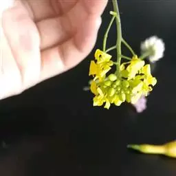 花序伞房状,果期伸长;萼片直立,早落,长圆条形,背面有分叉细柔毛;花瓣黄色,长圆状倒卵形,长2-2.5毫米,或稍短于萼片,具爪;雄蕊6枚,比花瓣长三分之一。