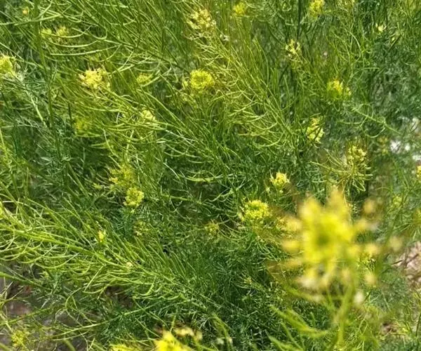 播娘蒿(Descurainia sophia (L.)Webb. ex Prantl)是十字花科,播娘蒿属一年生草本植物,高可达80厘米,叉状毛,茎生叶为多,茎直立,分枝多,叶片为3回羽状深裂,末端裂片条形或长圆形,裂片下部叶具柄,上部叶无柄。花序伞房状,萼片直立,早落,长圆条形,花瓣黄色,长圆状倒卵形,长角果圆筒状,无毛,果瓣中脉明显;种子多数,长圆形,4-5月开花。