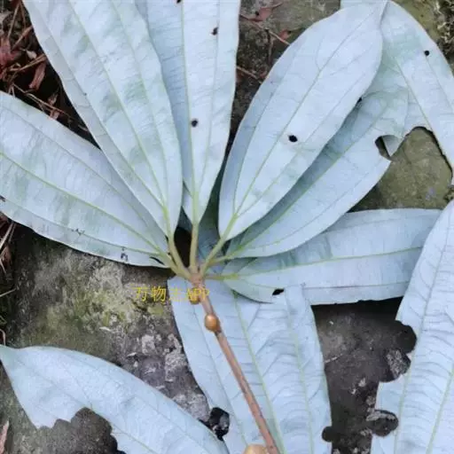 乔木,高达22m;树皮灰褐至深褐色,平滑。小枝圆锥形,幼时密被黄褐色柔毛,老时毛被脱落渐稀疏。顶芽大,卵圆形,鳞片外面被锈色短柔毛。叶轮生,4~5片一轮,长圆状披针形至长圆状倒披针形或椭圆形,长15~31cm,宽4.5~9cm,先端短尖或突尖,基部尖锐,革质,上面深绿色,有光泽,无毛,下面带绿苍白,幼时密被黄褐色长柔毛,老时毛渐脱落较稀疏而被厚白粉,离基三出脉,侧脉每边3~4条,中脉、侧脉在两面均突起,横脉在叶下面明显;叶柄长1.5~2cm,密被黄褐色柔毛。伞形花序数个生于枝侧,具总梗;总梗长约2mm;每一花序有花5朵;花梗长3mm,密被黄褐色柔毛;花被裂片4,卵形,黄白色,长约3mm,外面有稀疏柔毛,边缘有睫毛,内面无毛;雄花:能育雄蕊6,花丝无毛,第三轮基部的腺体椭圆形,具柄;退化子房卵形,花柱有柔毛;雌花:退化雄蕊长3~3.2mm,无毛,子房卵形或卵圆形,无毛,花柱短,有柔毛,柱头头状。果椭圆形或球形,长1.2~1.8cm,直径0.8~1.5cm,成熟时黑色;果梗长0.7~1cm,密被柔毛,顶部略增粗。花期3~4月,果期8~10月。