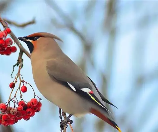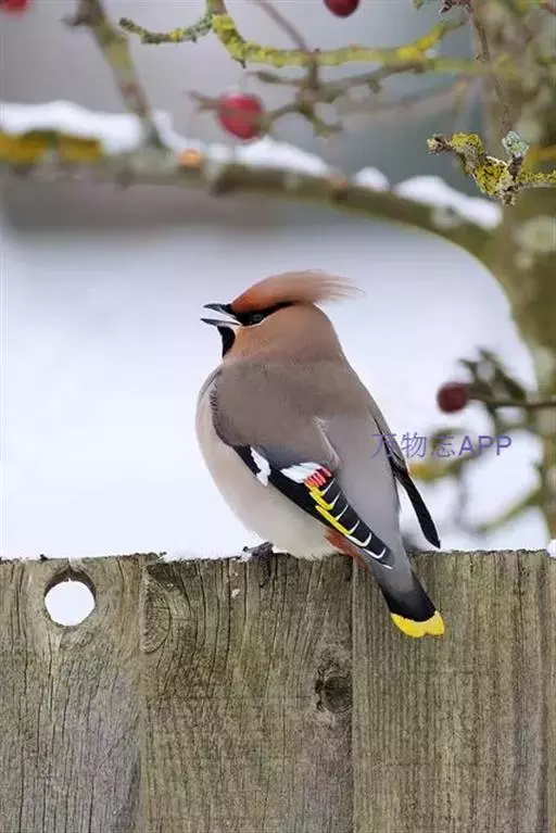 太平鸟属雀形目,太平鸟科的鸟类。太平鸟通体灰褐色,具羽冠;颏、喉黑色,尾羽先端黄色;虹膜暗红色;嘴黑;脚、爪黑色。在国内为冬候鸟,在东北、内蒙古及华北一带均可见到;新疆;四川、福建等地偶尔遇见。太平鸟为我国的旅鸟及冬候鸟,集结成大群在辽宁以南西至新疆、南至福建、台湾的广大地区越冬。秋季迁来的时间较晚,为各种旅鸟的后队;一般最早为11月初,迟来者可在次年1月,个别年份可在9月中旬出现。共分化为两个亚种,中国有一个。羽色绚丽,常被饲为笼鸟,供观赏用。