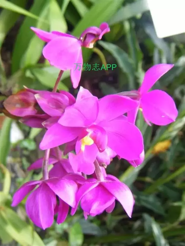 紫花苞舌兰:植株高达1米。假鳞茎卵状圆锥形,具3-5枚叶。叶质地薄,淡绿色,狭长,具折扇状的脉。花葶长达1米,下部具数枚筒状鞘;总状花序短,具约10朵花;花紫色;花瓣近椭圆形,比萼片大,先端锐尖;唇瓣贴生于蕊柱基部,长约1.5厘米,3裂。花期常在夏季。常见于山坡草丛中。广泛分布于中国台湾,从日本经菲律宾、越南、泰国、马来西亚、斯里兰卡、印度南部、印度尼西亚、新几内亚岛到澳大利亚和太平洋一些群岛。此花有栽培,…
