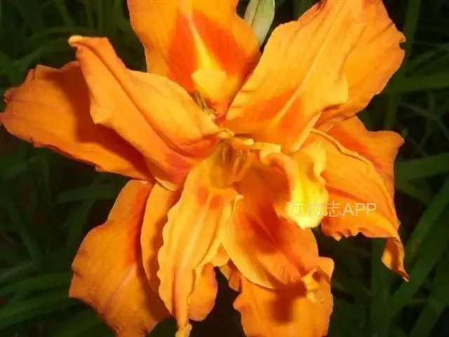 重瓣萱草 L. var. kwanso Regel),百合科萱草属植物。根近肉质,中下部有纺锤状膨大;花桔黄色,花被裂片多数,雌雄蕊发育不全。花被管较粗短,长2-3厘米;内花被裂片宽2-3厘米。全国各地常见,…