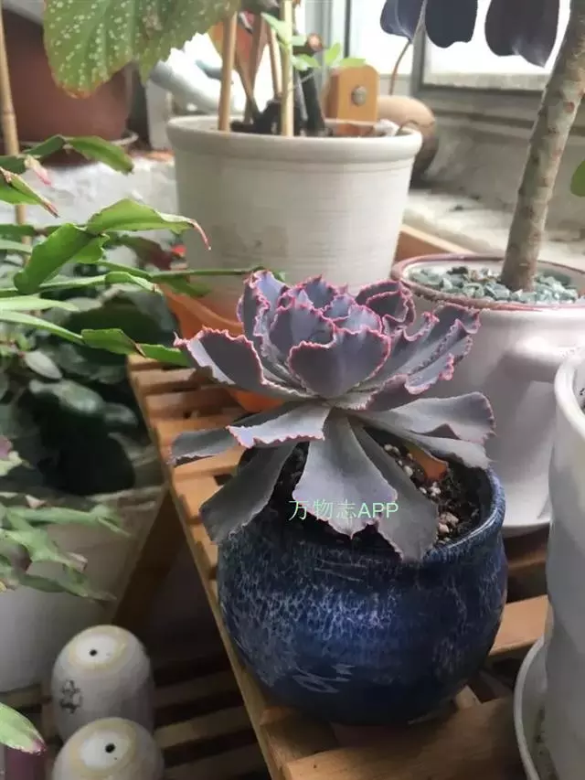 江户紫,景天科伽蓝菜属草本植物,是多年生草本花卉。花白色,但栽培中很少能见到花,常作观叶植物栽培。…