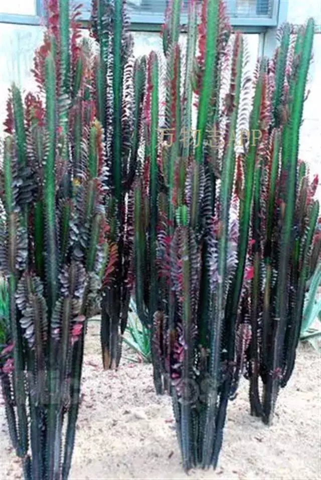 红彩云阁是彩云阁的栽培品种。原种彩云阁产于纳米比亚,其形态为多分枝灌木,分枝全部向上生长。3—4棱,通常3棱,粗4—6厘米、长15—25厘米,但在栽培中分枝较细而更长。棱缘有坚硬短齿。表皮深绿色有白色晕纹。对生刺红褐色,0.3—0.4厘米长。在分枝上部每棱上都有卵圆形带短尖的绿色叶,叶长3—5厘米,叶质很薄。冬季寒冷时会落叶,翌年5月萌发新叶。