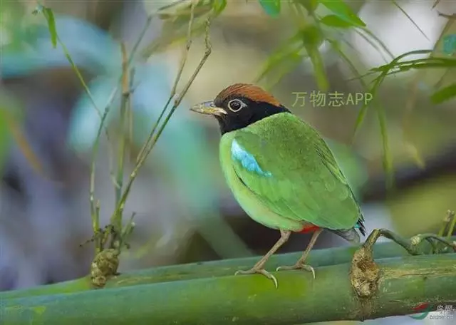 绿胸八色鸫:是雀形目八色鸫科的鸟类,共有12个亚种。体长为16-18厘米,体重65-69克。体型圆胖,尾短,腿长。头黑,上体绿色,两翼深色而具白色斑纹,头顶至后枕深褐,胸及腹部苹果绿,臀亮红。飞行时易见。叫声简单是重复的双哨音“pih-pih“,间隔极短。有些亚种活动区域高可至海拔2000米。在森林底层活动,翻拣树叶及朽木以寻找无脊椎动物为食。…