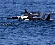 虎鲸,是鲸偶蹄目海豚科虎鲸属哺乳动物。成体体重6600千克,平均体长6-9米;头部略圆,…全部>>