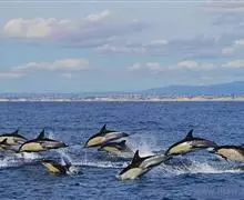 真海豚,身体细而流线型。体色十分复杂而独特,通常十字交叉型,黄褐色在前灰色在后,背面黑色向下延伸,…全部>>