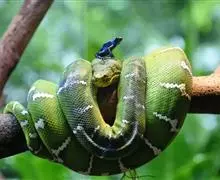 绿树蟒是爬行纲有鳞目蟒科树蟒属的脊索动物。绿树蟒,身体粗壮,头部和颈部区分明显;头部鳞片细小,粒状,…全部>>