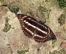 黄带枯叶蝶,蛱蝶科瑶蛱蝶属的一个物种。展翅宽60~70mm。雄虫翅膀表面底色黑褐色,中央具贯穿上下…全部>>