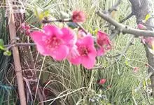 贴梗海棠Nakai)是蔷薇科、木瓜海棠属植物。落叶灌木,高达2米,枝条直立开展,有刺。叶片卵形至椭圆形,稀长椭圆形,长3-9厘米,宽1.5-5厘米。花先叶开放,3-5朵簇生于二年生老枝上。…全部>>