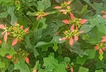 猩猩草:常绿或半常绿灌木,盆栽时株高0.5米-2米,在亚热带地区可长到6米以上。茎直立而光滑,单叶互生,卵状椭圆形至阔披针形,具不规则的深缺刻。长10-15厘米。花小,有蜜腺,排列成密集的伞房花序。…全部>>