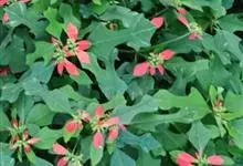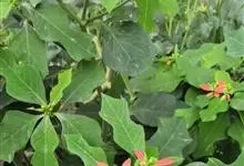 猩猩草:常绿或半常绿灌木,盆栽时株高0.5米-2米,在亚热带地区可长到6米以上。茎直立而光滑,单叶互生,卵状椭圆形至阔披针形,具不规则的深缺刻。长10-15厘米。花小,有蜜腺,排列成密集的伞房花序。…全部>>