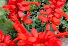 一串红,又称爆仗红、象牙红,为唇形科鼠尾草属植物。花序修长,色红鲜艳,花期又长,适应性强,为中国城市和园林中最普遍栽培的草本花卉。原产巴西、南美洲。喜温暖和阳光充足环境。不耐寒,耐半阴,忌霜雪和高温,…全部>>