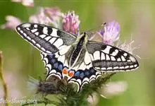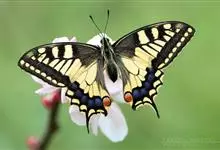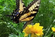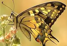 金凤蝶,是鳞翅目凤蝶科凤蝶属动物。金凤蝶为中型凤蝶,翅展70-84毫米,翅背面底色黑褐色,翅脉黑色,翅室具黄斑;前翅背面基部呈暗黄色,亚外缘为黑色,内具一列小黄斑;后翅背面亚外缘区具黑宽边,…全部>>