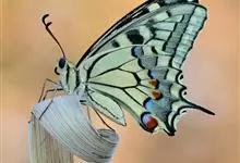 金凤蝶,是鳞翅目凤蝶科凤蝶属动物。金凤蝶为中型凤蝶,翅展70-84毫米,翅背面底色黑褐色,翅脉黑色,翅室具黄斑;前翅背面基部呈暗黄色,亚外缘为黑色,内具一列小黄斑;后翅背面亚外缘区具黑宽边,…全部>>
