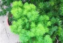 蓬莱松是天门冬科、天门冬属多年生丛生草本植物。宿存,圆柱形肉质根,纵截面为绿色和表面灰色。植株高可达3米。茎呈圆柱形或近四边形,底部木质化,具有灰色或灰褐色。幼嫩的茎在每个节上都被紫绿色鳞片包,…全部>>