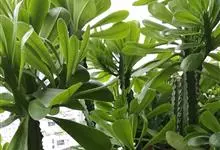 金刚纂,是大戟科大戟属的肉质灌木状小乔木。茎圆柱状,上部多分枝,叶片互生,少而稀疏,顶端钝圆,基部渐狭;花序二歧状腋生,苞叶膜质,总苞阔钟状,裂片半圆形,边缘具缘毛,雄花多枚;花期6-9月。…全部>>
