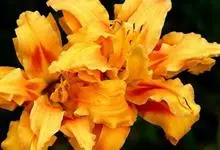重瓣萱草 L. var. kwanso Regel),百合科萱草属植物。根近肉质,中下部有纺锤状膨大;花桔黄色,花被裂片多数,雌雄蕊发育不全。花被管较粗短,长2-3厘米;内花被裂片宽2-3厘米。…全部>>