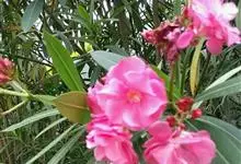 夹竹桃,又名红花夹竹桃、欧洲夹竹桃,是夹竹桃科夹竹桃属的一种常绿直立大灌木,枝条灰绿色,含水液。叶披针形,3叶轮生。聚伞花序顶生,花冠粉红至深红色,花冠漏斗状,有特殊香味。蓇葖果,圆柱形。种子长圆形,…全部>>