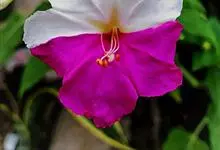 即紫茉莉,英文名:Four-o'clock,Marvel of Peru,为紫茉莉科、紫茉莉属多年生草本植物,一年生栽培。株高50~80cm。根粗壮,茎多分枝而散生。叶对生,卵形或心脏形。花数朵簇生…全部>>