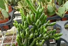 筒叶花月,是景天科青锁龙属的多年生草本植物。植株多分株,灌木状,茎较粗壮,圆柱形,表皮灰褐色;叶片肉质,互生,呈圆筒状,簇生于茎或分枝顶端,叶端呈斜截形,截面为椭圆形;花呈星状,淡白色;花期秋季。…全部>>