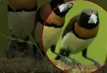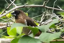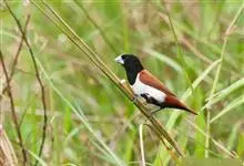 栗腹文鸟:小型鸟类,体长10-12厘米。嘴蓝灰色,基部粗厚,先端尖、呈圆锥状, 脚亦为蓝灰色,整个头、颈和上胸黑色,其余体羽栗色,或下胸和腹中央至尾下覆羽黑色。尾栗红色。全部>>